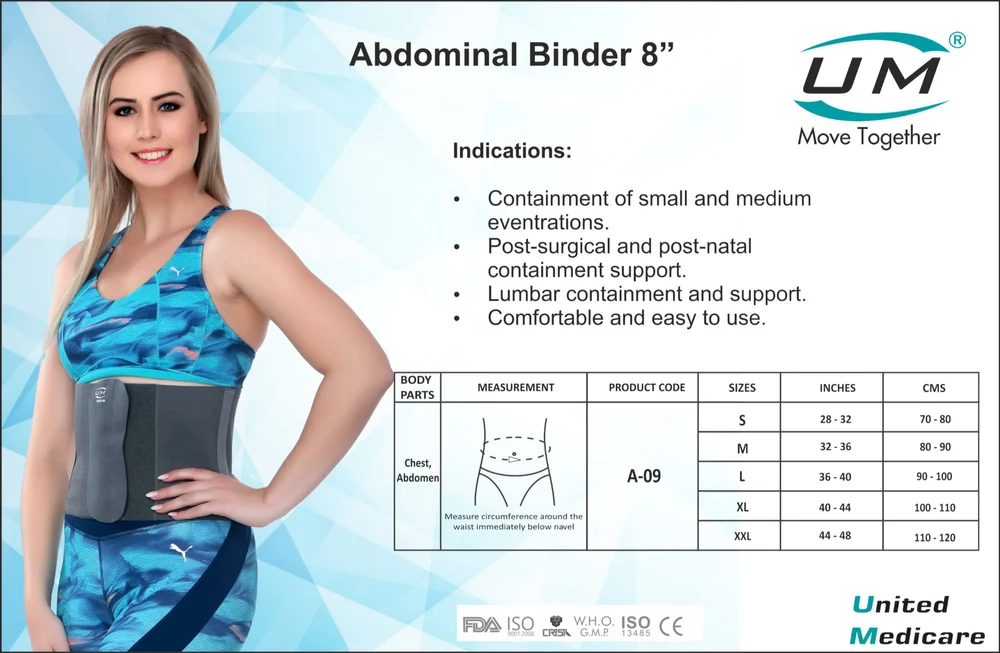 Crafted from high-quality, breathable fabric, the UM Abdominal Binder (8-inch) ensures long-lasting comfort while helping to alleviate pain and support the abdominal region. Its 8-inch width offers comprehensive coverage, providing targeted compression that helps reduce swelling, supports weakened muscles, and encourages proper posture and healing.