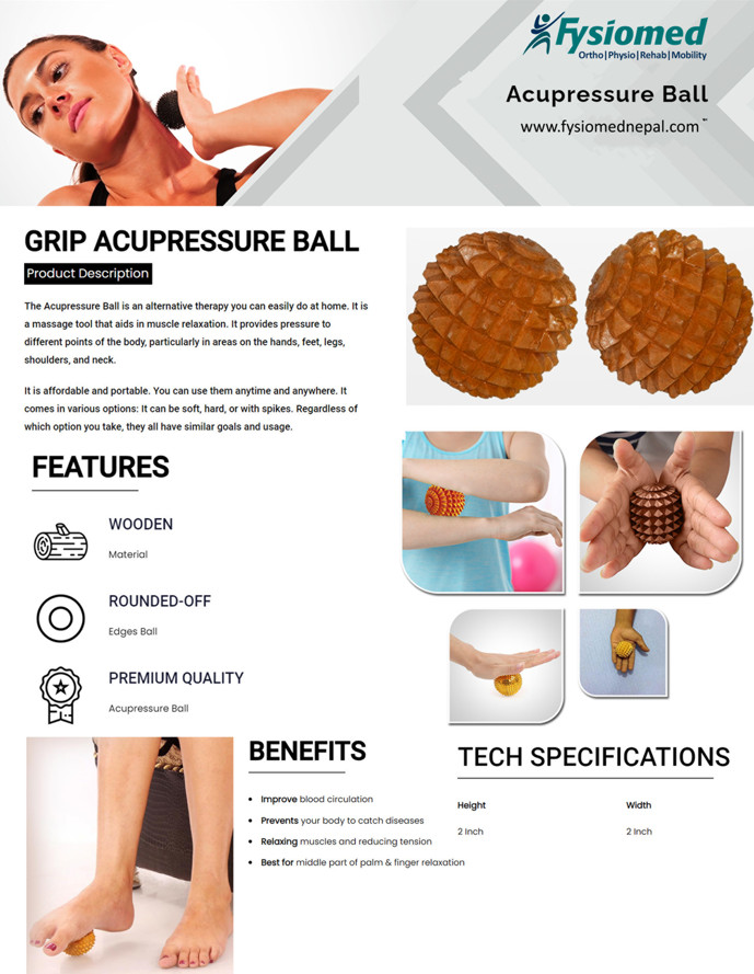 The Acupressure Ball is an alternative therapy you can easily do at home. It is a massage tool that aids in muscle relaxation. It provides pressure to different points of the body, particularly in areas on the hands, feet, legs, shoulders, and neck.