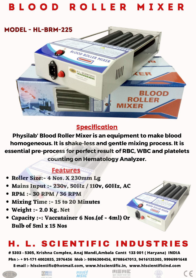Physilab blood mixer this is an equipment to make blood homogeneous. This is shack-less and gentle mixing process. It is essential pre-process for perfect result of rbc, wbc and platelets counting on hematology analyzer. This mixer employs a shack-less and gentle mixing process, preserving the integrity of blood samples during preparation. Its compact and ergonomic design makes it a suitable addition to laboratory settings where space and precision are paramount.