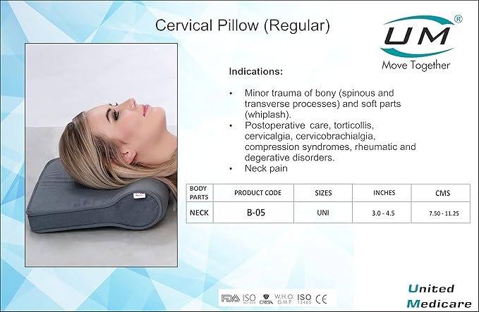 Relieve neck pain and improve sleep quality with the United Medicare (UM) Soft Cervical Pillow B-05. This high-quality pillow is designed to provide superior support, comfort, and pain relief to the neck joint, improving range of motion and enhancing stability. It is ideal for people who have suffered from a neck injury and those who are prone to neck pain or need to prevent neck injuries during sleep.