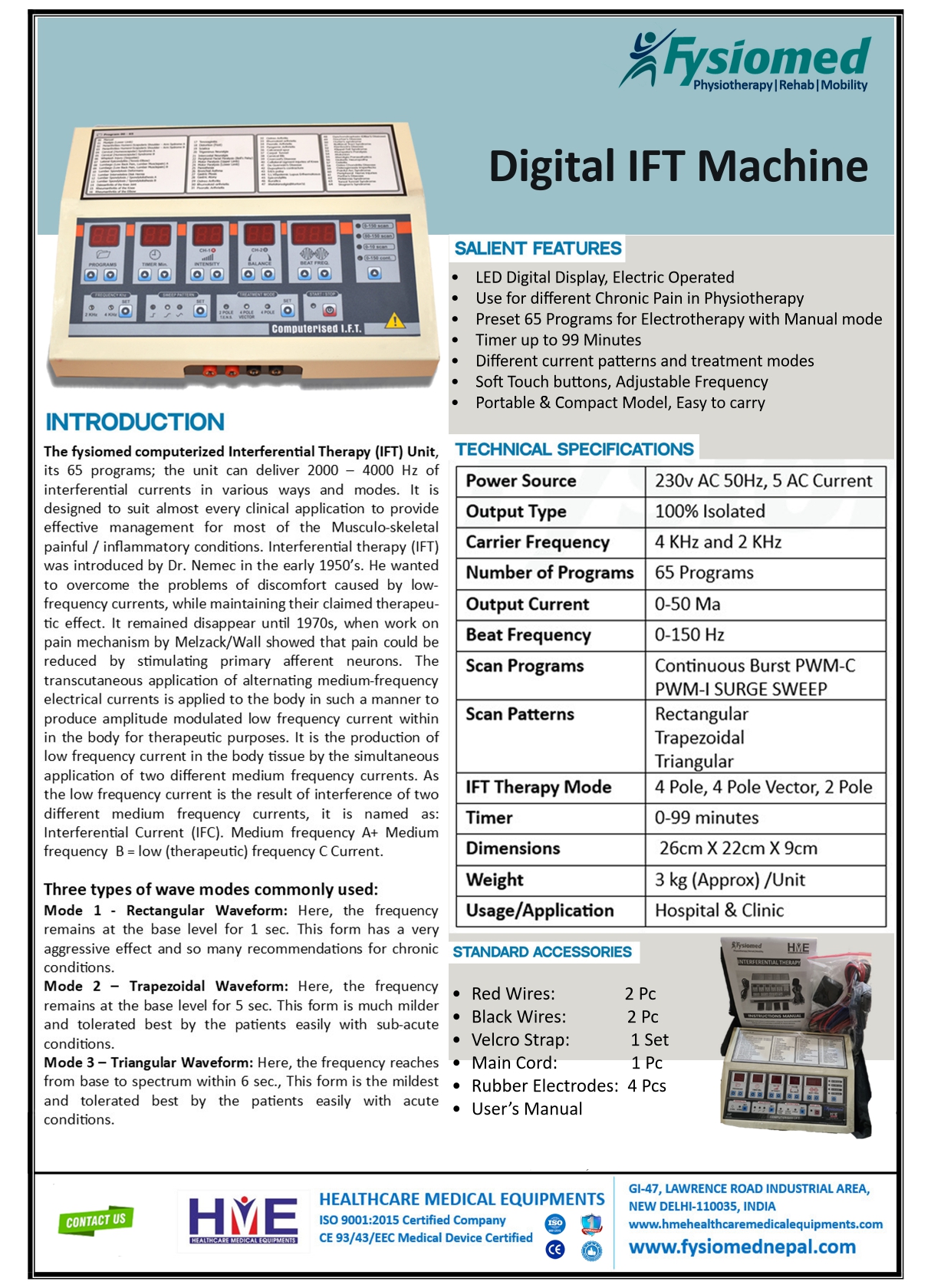 | IFT Therapy Mode | 4 Pole, 4 Pole Vector, 2 Pole |