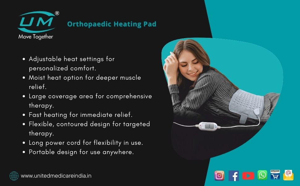 The UM Orthopaedic Heating Pad is a versatile and effective tool for relieving pain and discomfort. It provides localized dry heat to help soothe muscle aches, joint pain, menstrual cramps, and other ailments. The heating pad features three temperature settings to customize your comfort level, and its soft and comfortable construction ensures a relaxing experience.