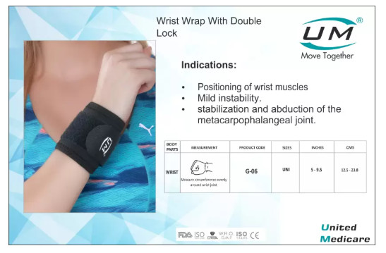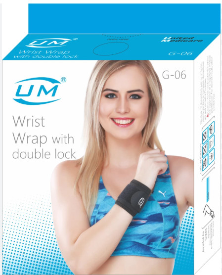 UM-Wrist Wrap With Double Locked is a wrist guard band that supports the area around the wrist by providing double-sided wrap for proper grip.